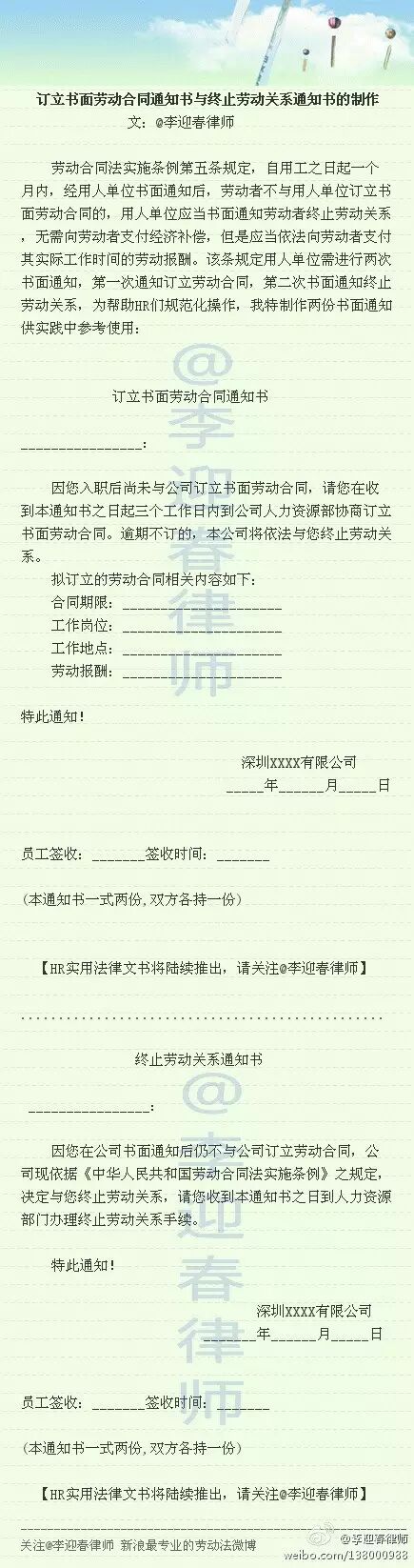 从上述规定看,用人单位需两次书面通知,缺一不可,否则存在法律风险!现提供这两份HR必备法律文书,供参考!